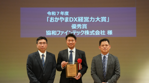 この度、協和ファインテック株式会社は「おかやまDX経営力大賞」の優秀賞を受賞いたしました。